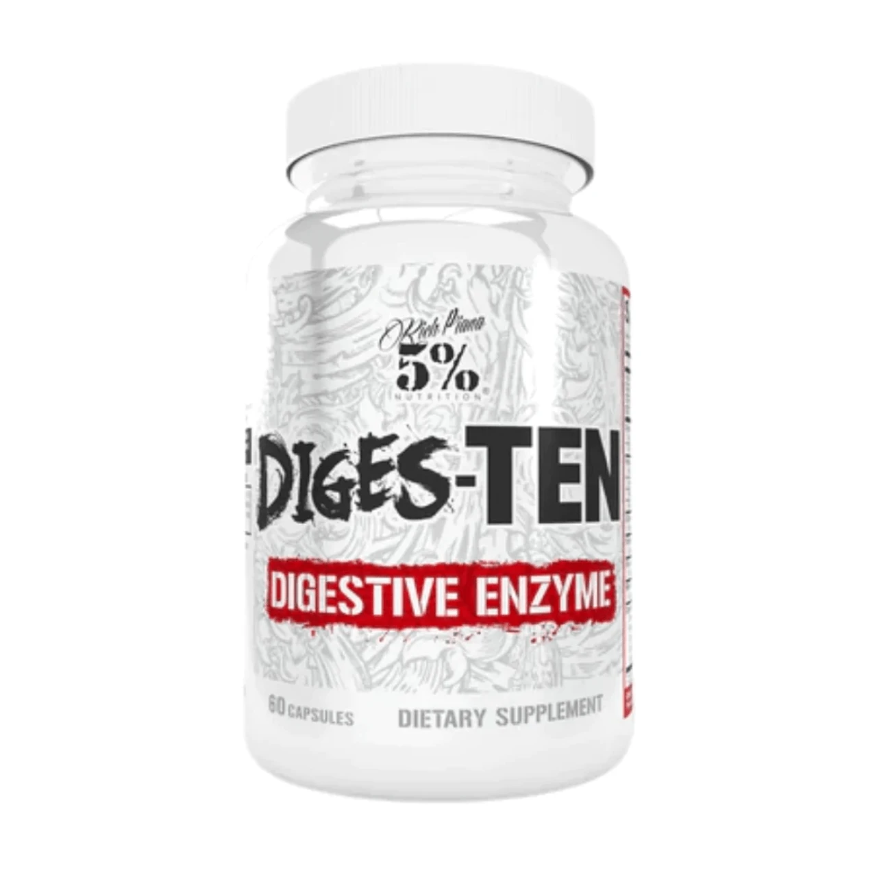 5% Nutrition Digest-Ten is a full spectrum digestive support supplement which features 7 blends to help support the digestion of protein and carbs, and to promote a normal gastric pH.
