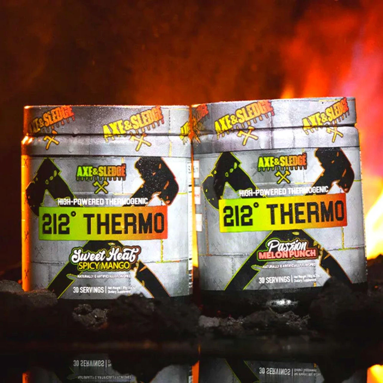 Axe & Sledge 212 Thermo is an all new stimulant powered Thermogenic Fat burner designed to enhance your metabolism, boost your energy levels, improve focus, and get you sweating in the gym. 212 Thermo is a great alternative to your traditional preworkout for those putting an emphasis on cutting or losing weight. What 212 Thermo lacks in the pump department it makes up for in the thermogenic department making it a great alternative preworkout for those doing heavy cardio workouts, though it can also be used for resistance training and weight lifting as well.