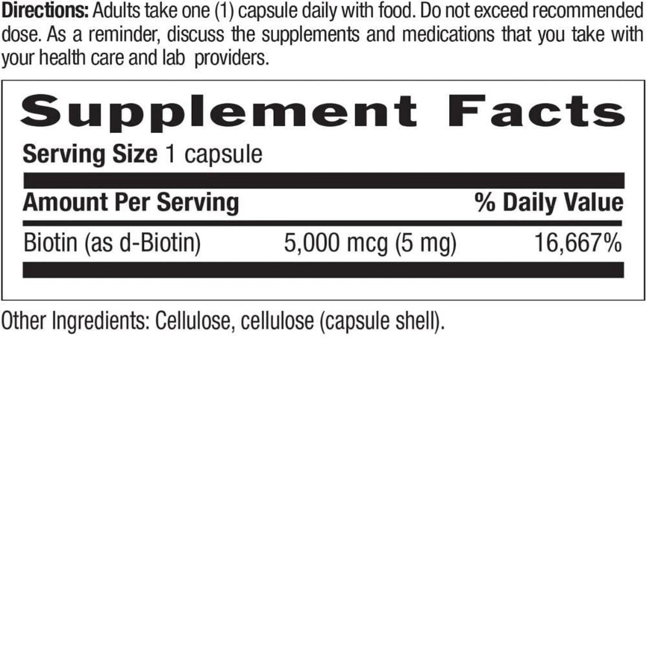 Biotin (as d-Biotin) 5,000 mcg (5 mg) | 16,667%