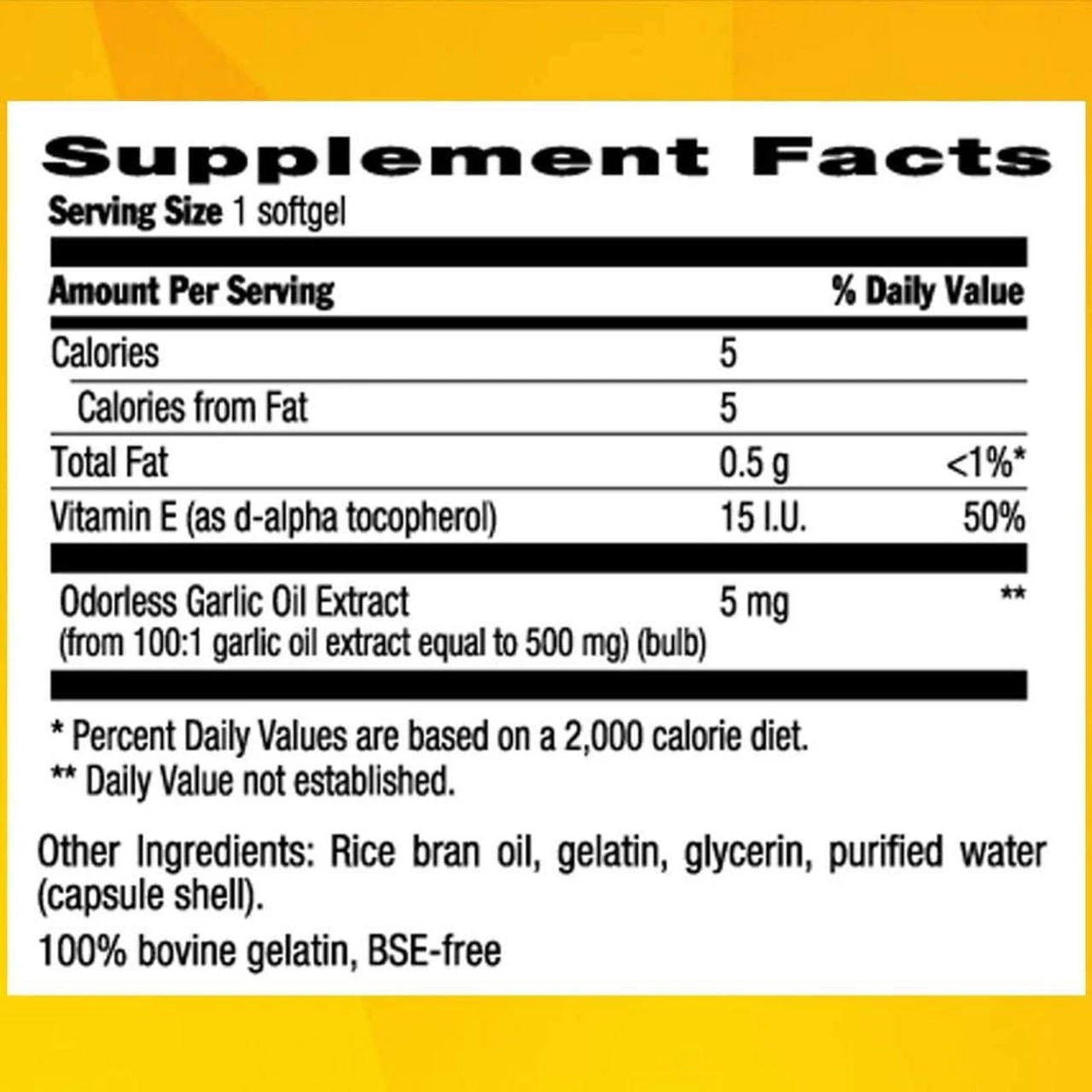 - 5mg of Odorless Garlic along with Rice Bran and Vitamin E