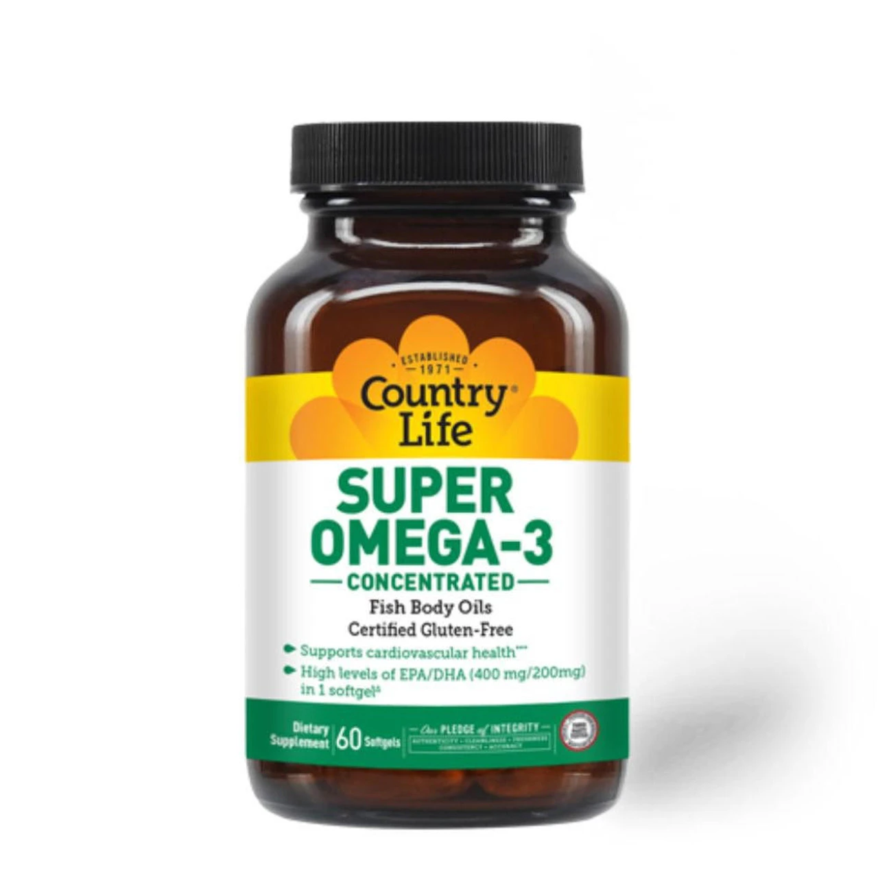 Omega 3 Fatty Acids help support cardiovascular health and they must come from either our diets, or through supplementation as they are not made by our bodies. Country Life Super Omega 3 Softgels feature 1000mg of Marine Lipid Oil per serving providing 400mg EPA and 200mg DHA.Â