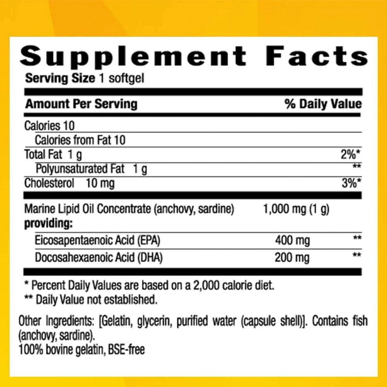 Marine Lipid Oil Concentrate (anchovy, sardine): 1,000 mg (1 g) **