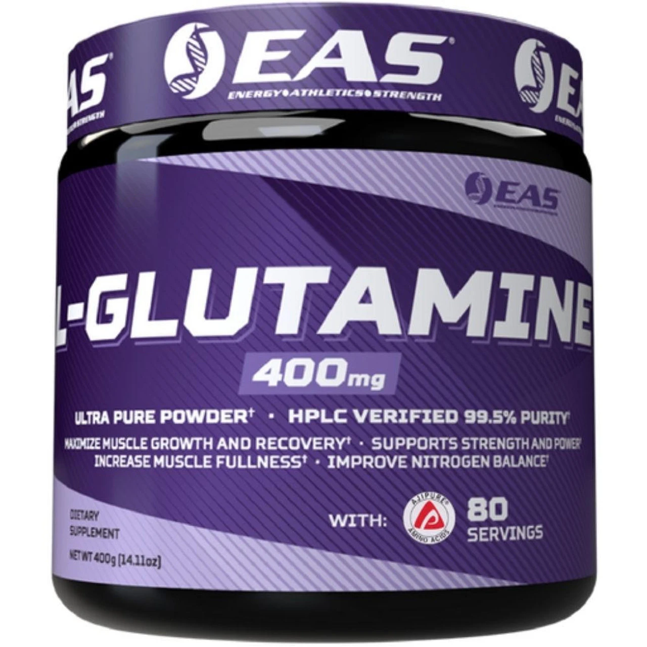 L-Glutamine is an amino acid which stimulates muscle protein synthesis and which is effective at replenishing energy levels for muscles after a tough workout. EAS L-Glutamine helps maximize growth and recovery, increases in strength and power, and increased muscle fullness. Each serving of EAS L-Glutamine contains 400mg of Ultra Pure L-Glutamine Powder.