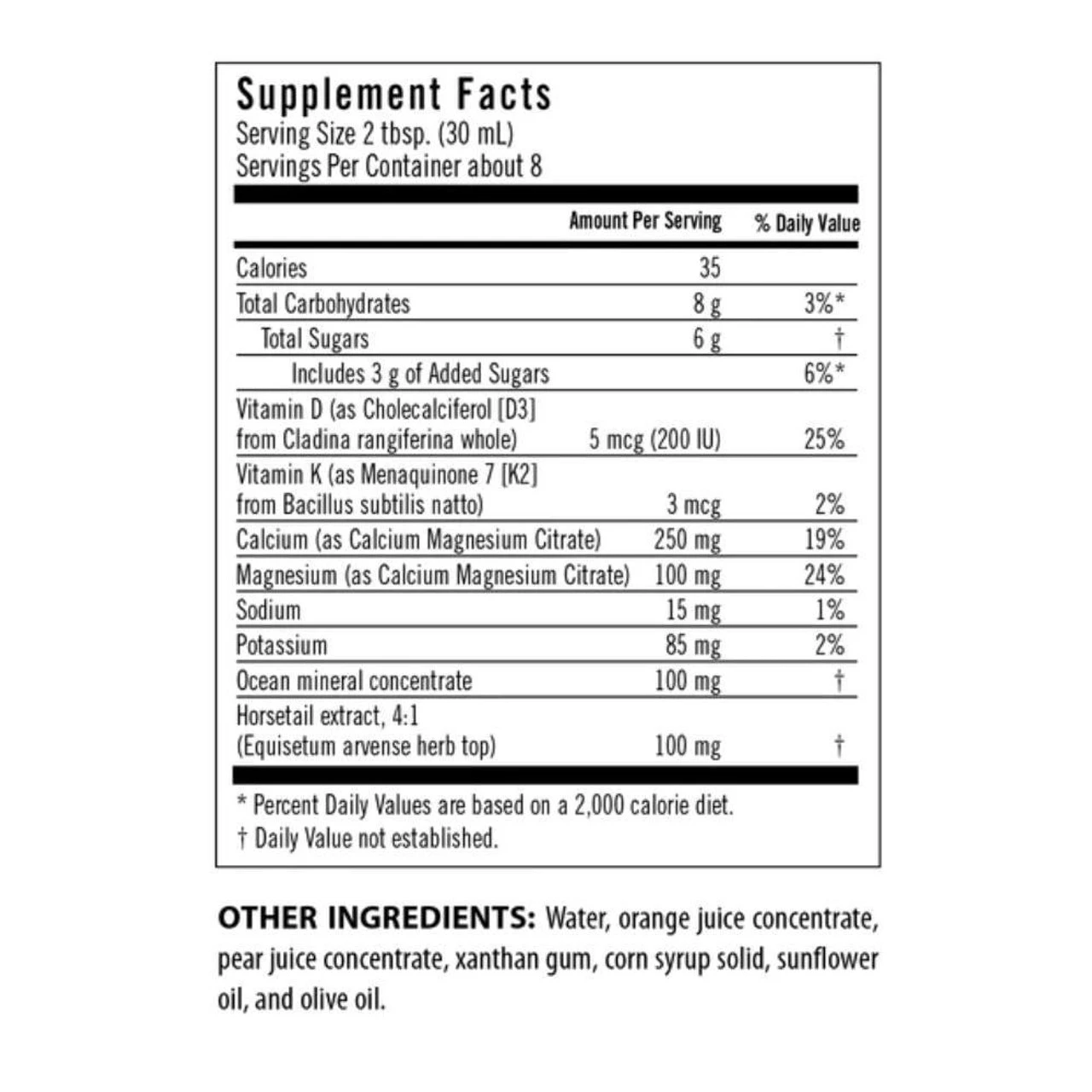 Flora Bone Health + w Calcium, Mag, D and K 8oz Ingredients