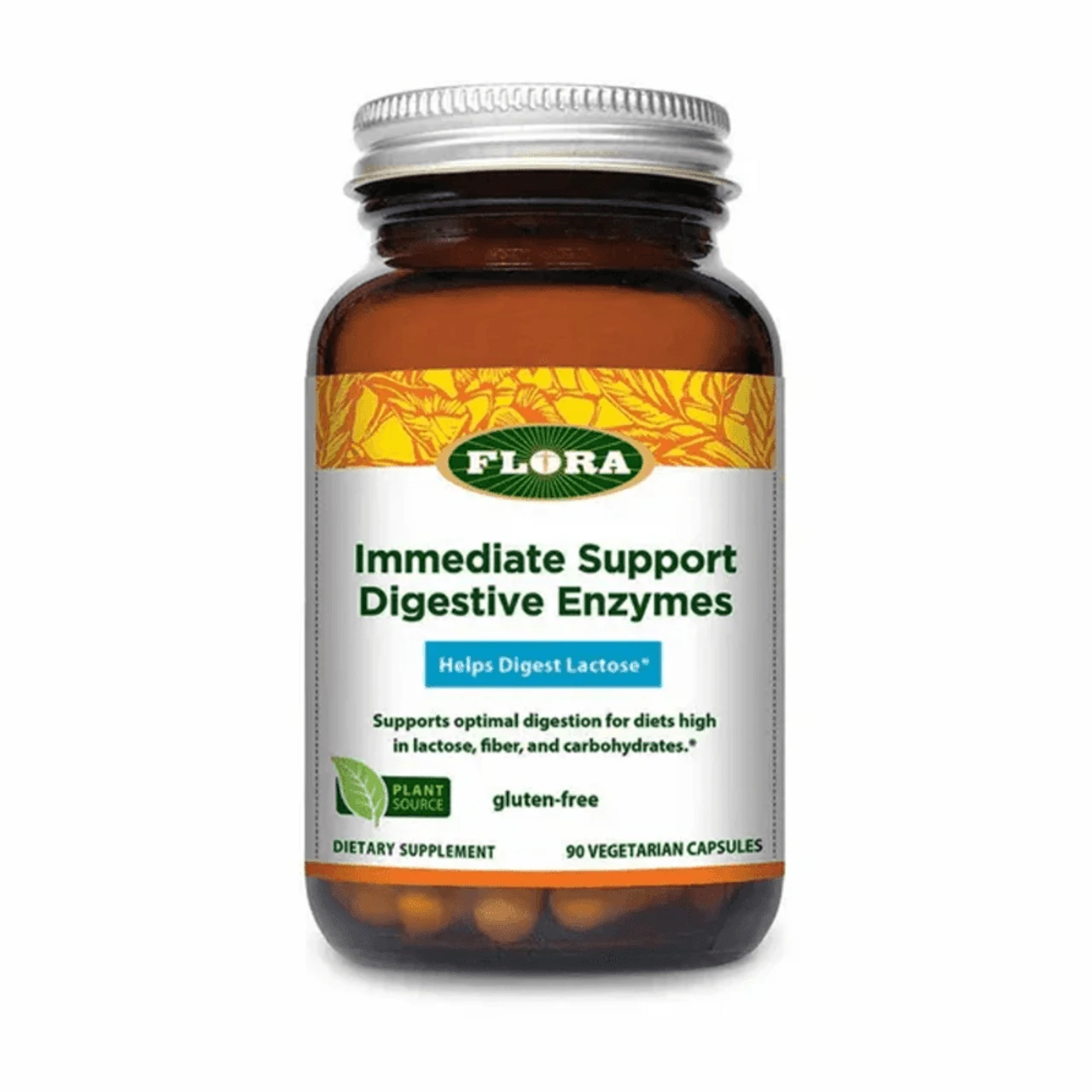Flora Immediate Support Digestive Enzymes help ease gas, bloating, and indigestion with a fast-acting blend of seven key enzymes. Designed for heavy meals and hard-to-digest foods, it supports nutrient absorption and relieves post-meal discomfort, especially for those with lactose or starch sensitivities.