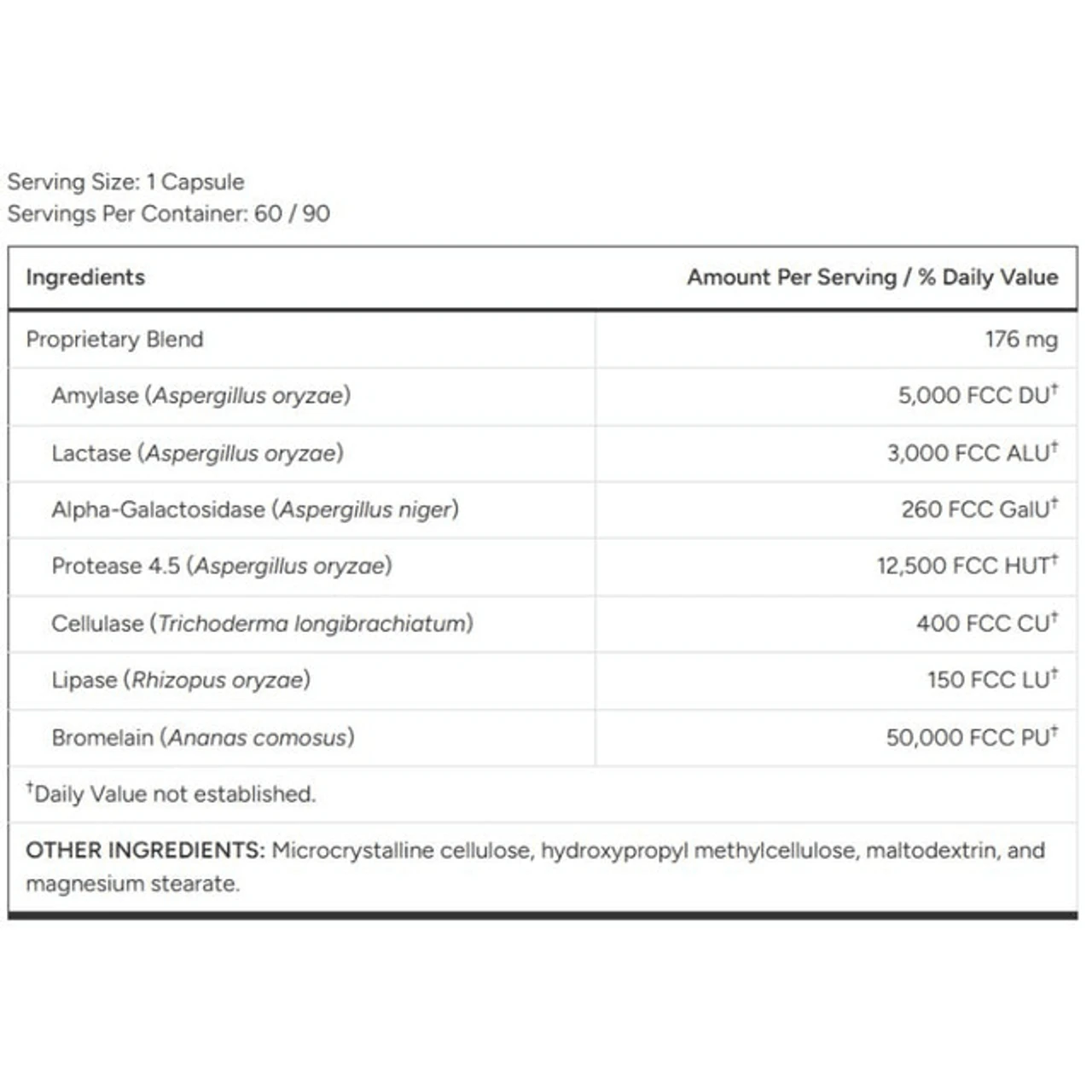 Take 1 capsule up to 3 times daily. Take 1 capsule with the first bite of food/meal. For a heavy meal, take an additional capsule in the middle of the meal.