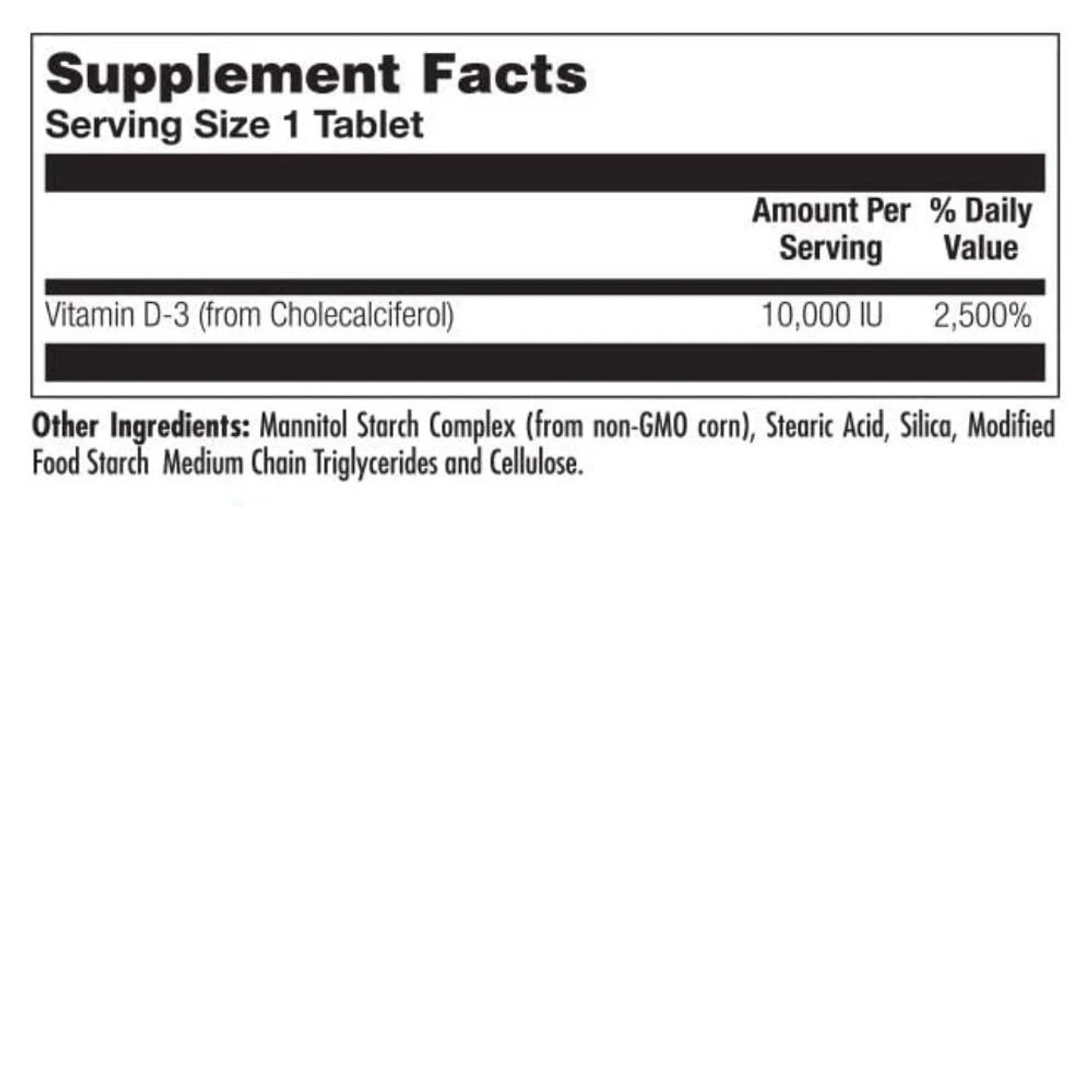 KAL Ultra D3 10,000IU 90 Micro Tablets Ingredients & Supplement Facts