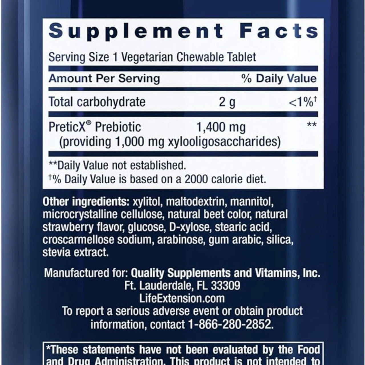 Life Extension Prebiotic Chewable 60 Tablets Ingredients