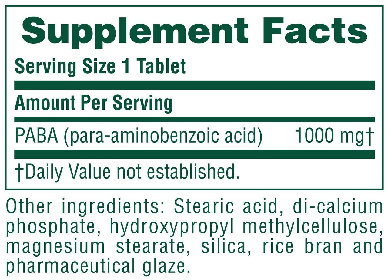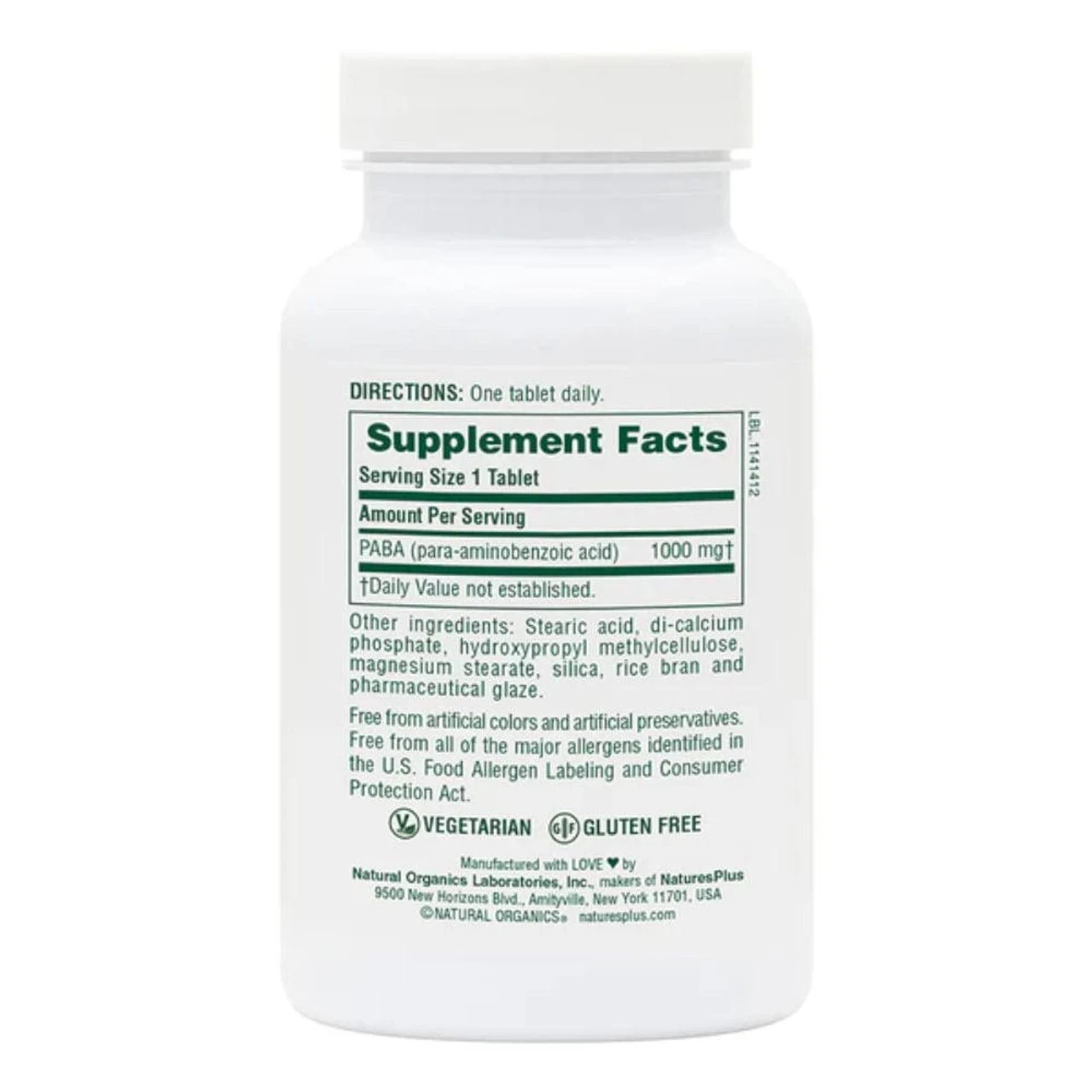 Nature’s Plus PABA 1000mg 60 Tablets Ingredients & Label