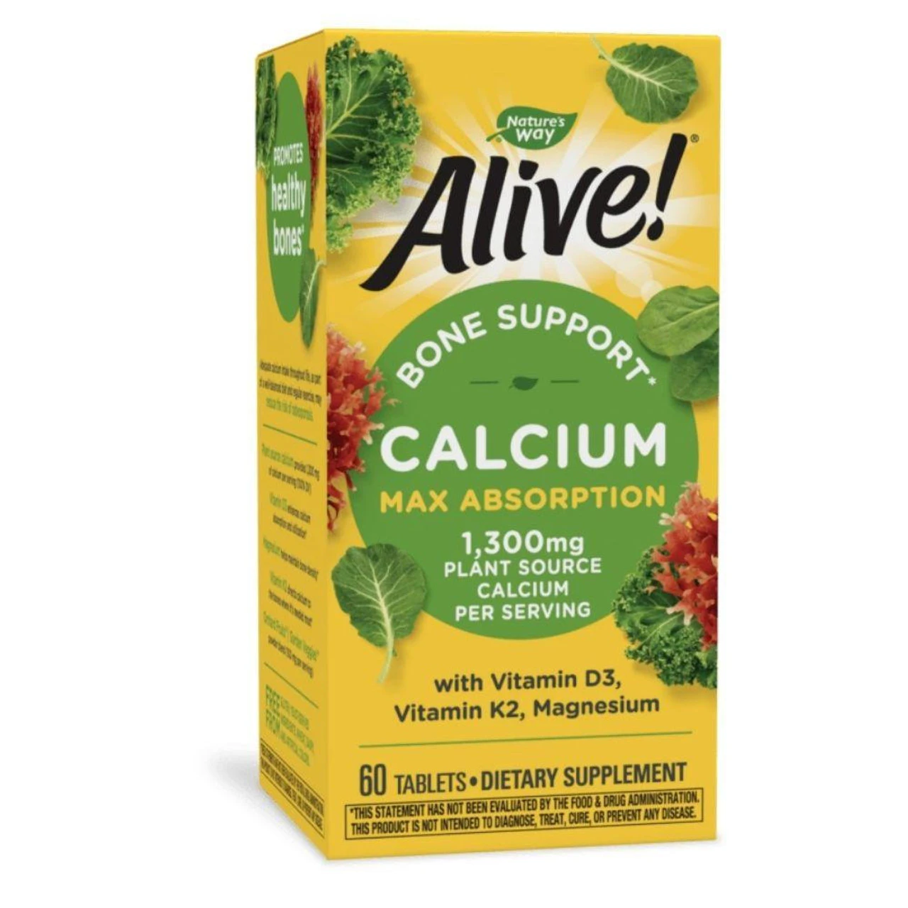 Nature’s Way Alive! Calcium is a Bone Support formula which contains Calcium along with Vitamins, Minerals and a Fruit and Greens Blend to support healthy bones and teeth. This highly bioavailable formula may help reduce the risk of osteoporosis.