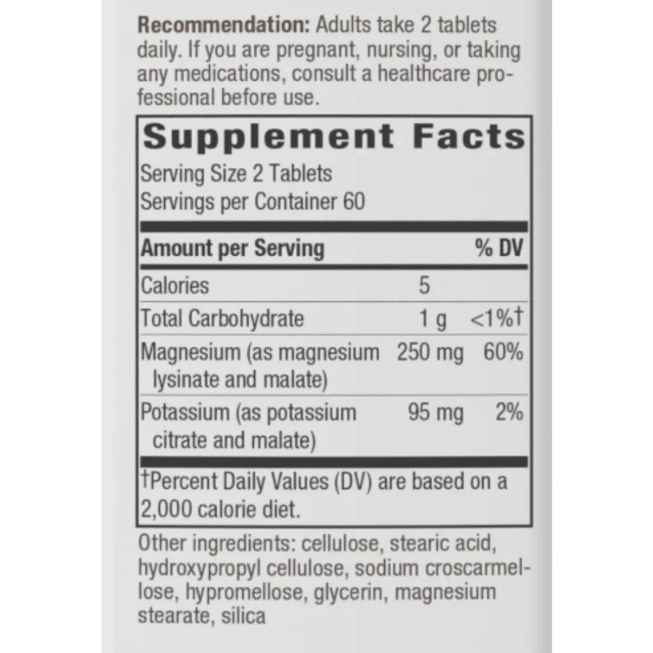 Nature’s Way Krebs Magnesium Potassium Complex Ingredients