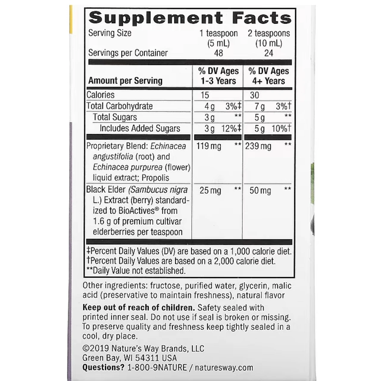 Nature’s Way Sambucus Immune Syrup Kids 8oz Ingredients