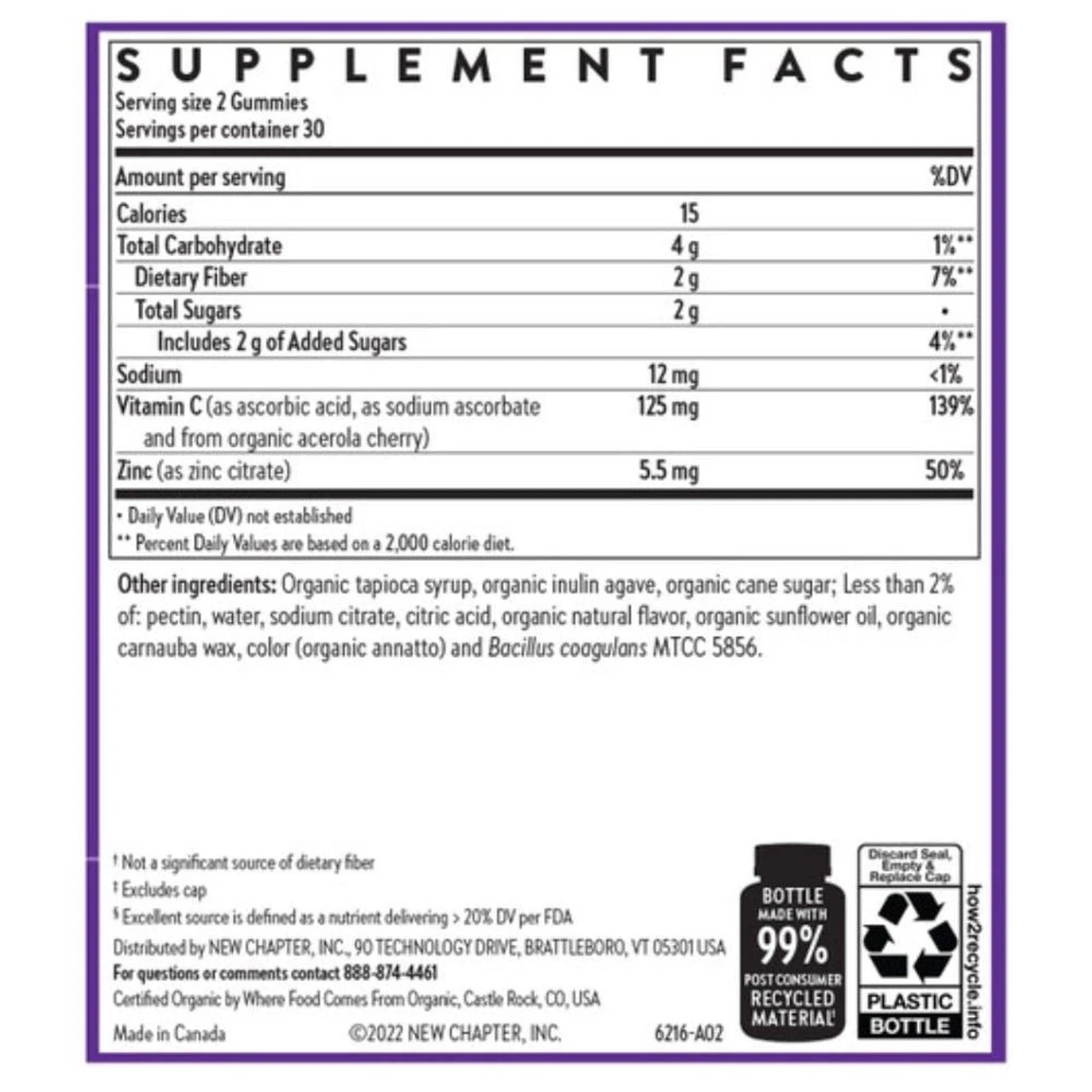 New Chapter Immune Defense Vitamin C+ 60 Gummies Ingredients