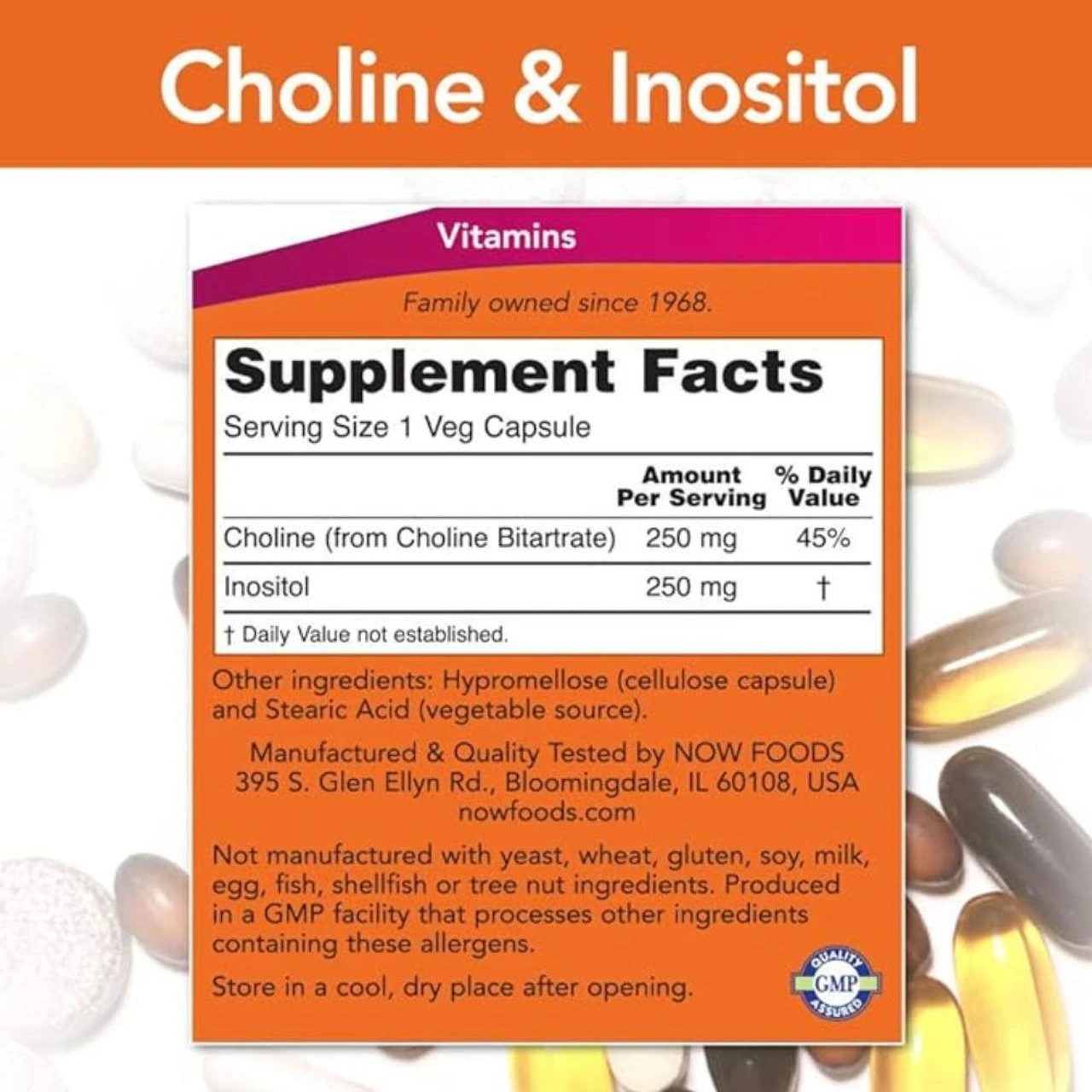 Now Foods Choline & Inositol 250/250 Mg 100 Capsules Ingredients