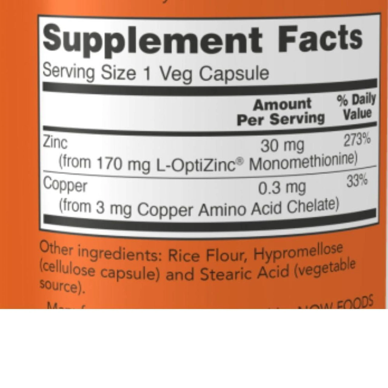 Now Foods L-Optizinc 30 Mg + Copper 100 Capsules Ingredients