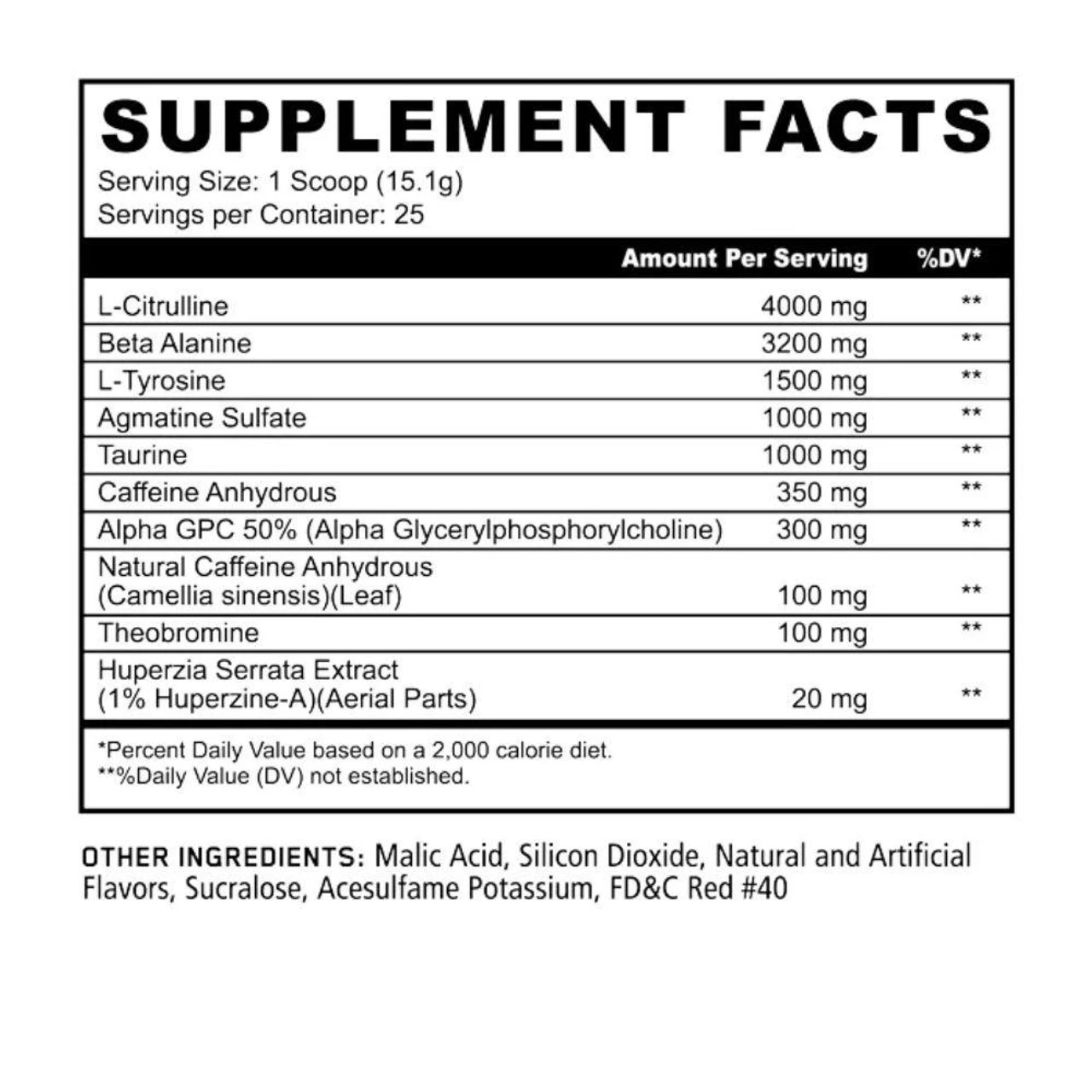 - Features Two Caffeine Sources + Citrulline, Tyrosine, Alpha GPC and More