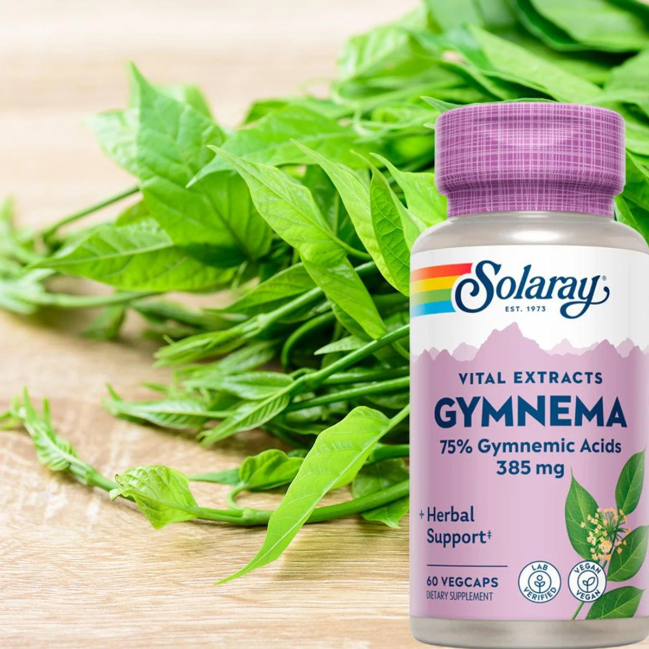 Gymnema Sylvestre is a woody vine native to Asia, Africa and Australia and it’s commonly used by those trying to fight sugar cravings by making sweet foods taste less appealing. It may also help control blood sugar. Each serving of Solaray Gymnema Leaf features 385mg of Gymenma per serving.Â