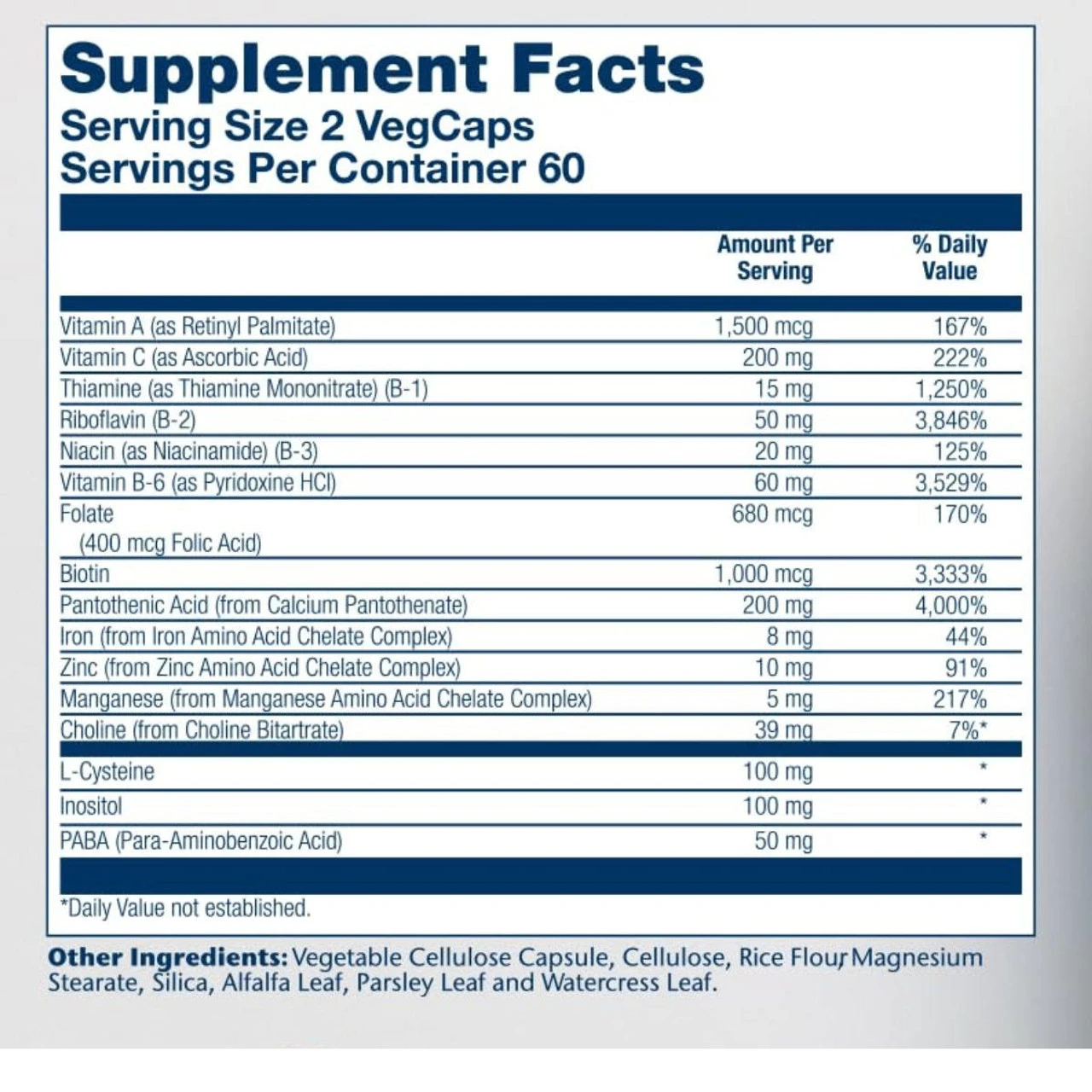 Solaray Hair Nutrients With L-Cysteine 120 Capsules Ingredients