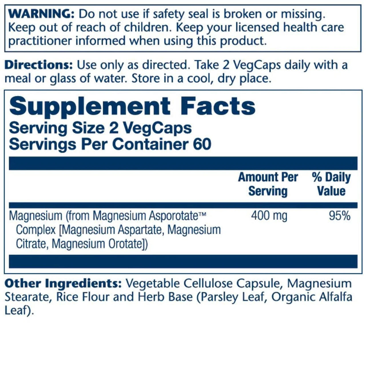 Solaray Magnesium Asporotate 400mg 120 Capsules Ingredients