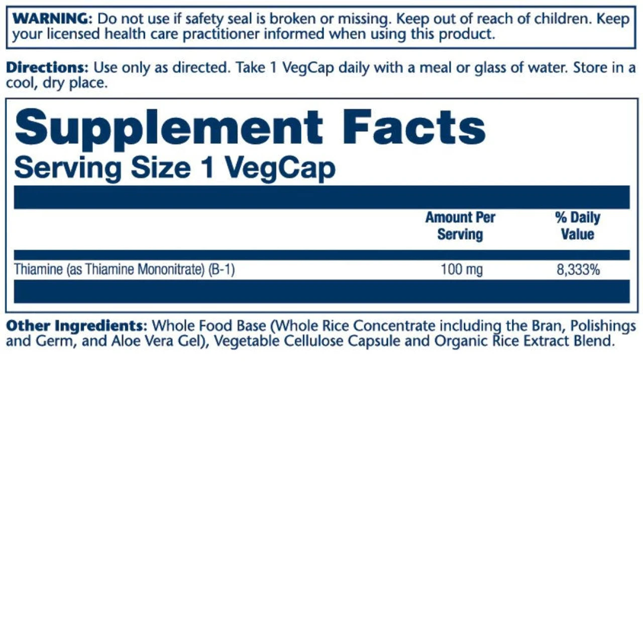 Solaray Vitamin B-1 100mg 100 Capsules Ingredients