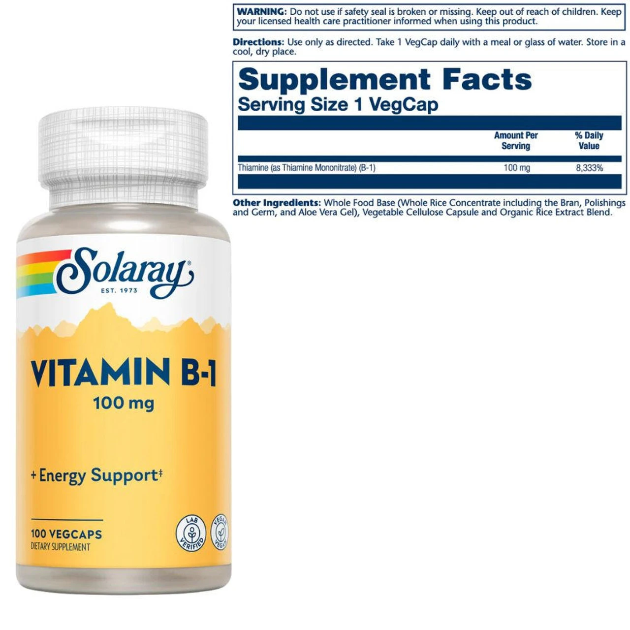 Solaray Vitamin B-1 100mg 100 Capsules Highlights & Benefits