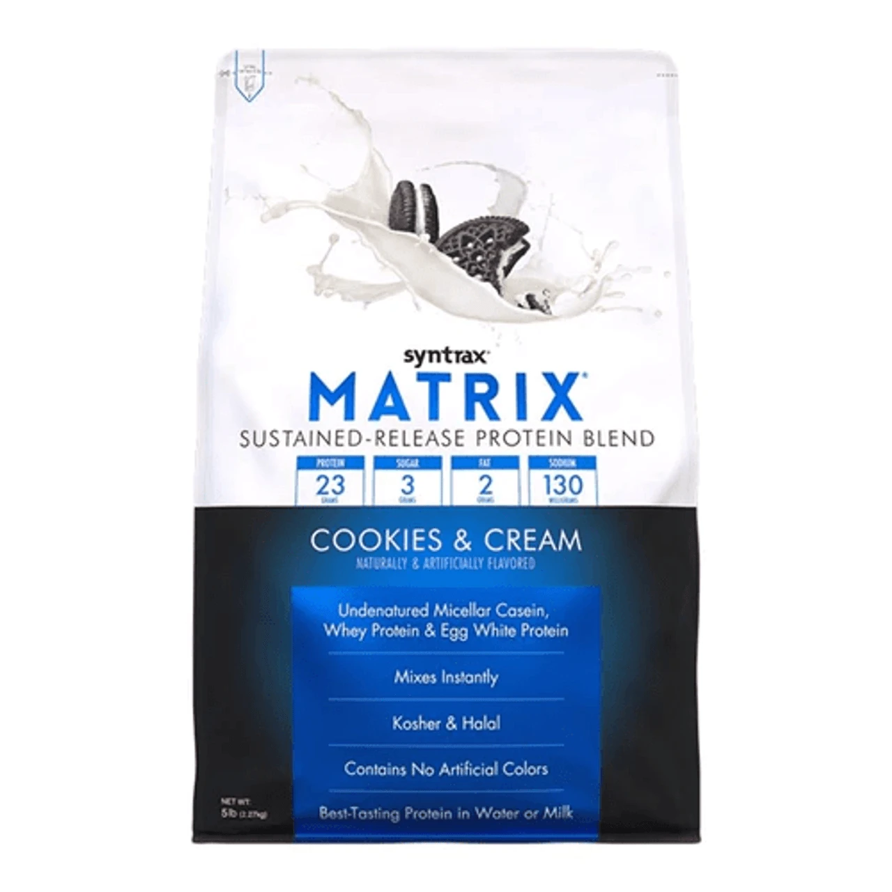 Syntrax Matrix is a Sustained Release Protein which is a blend of the highest quality protein concentrates on the market. Matrix Protein contains a combination of whey protein, micellar casein and egg albumin protein which creates a great taste, a milkshake like consistency and gives you a full spectrum of amino acids.