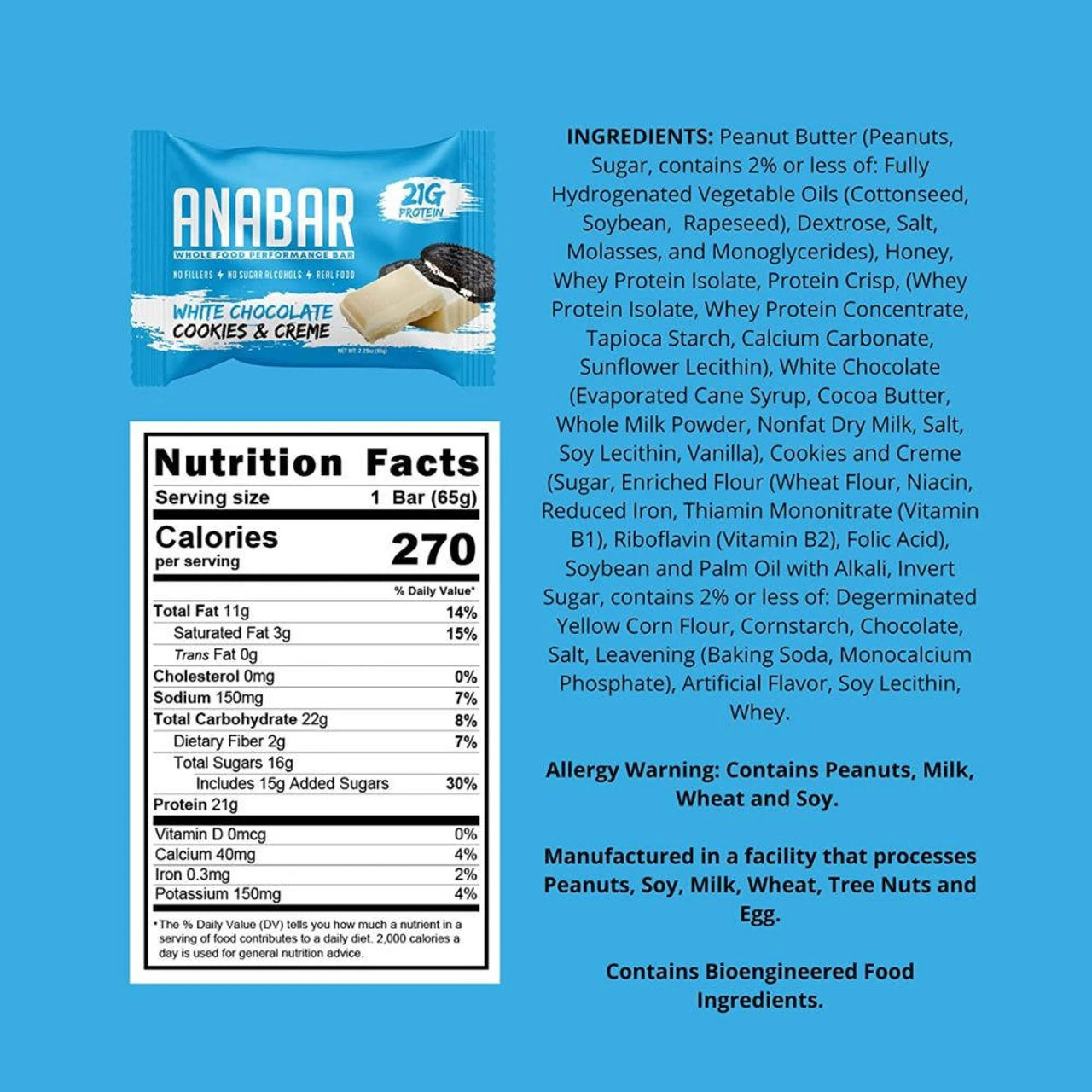 The Anabar Protein Bar 12 Box Ingredients and Supplement Facts