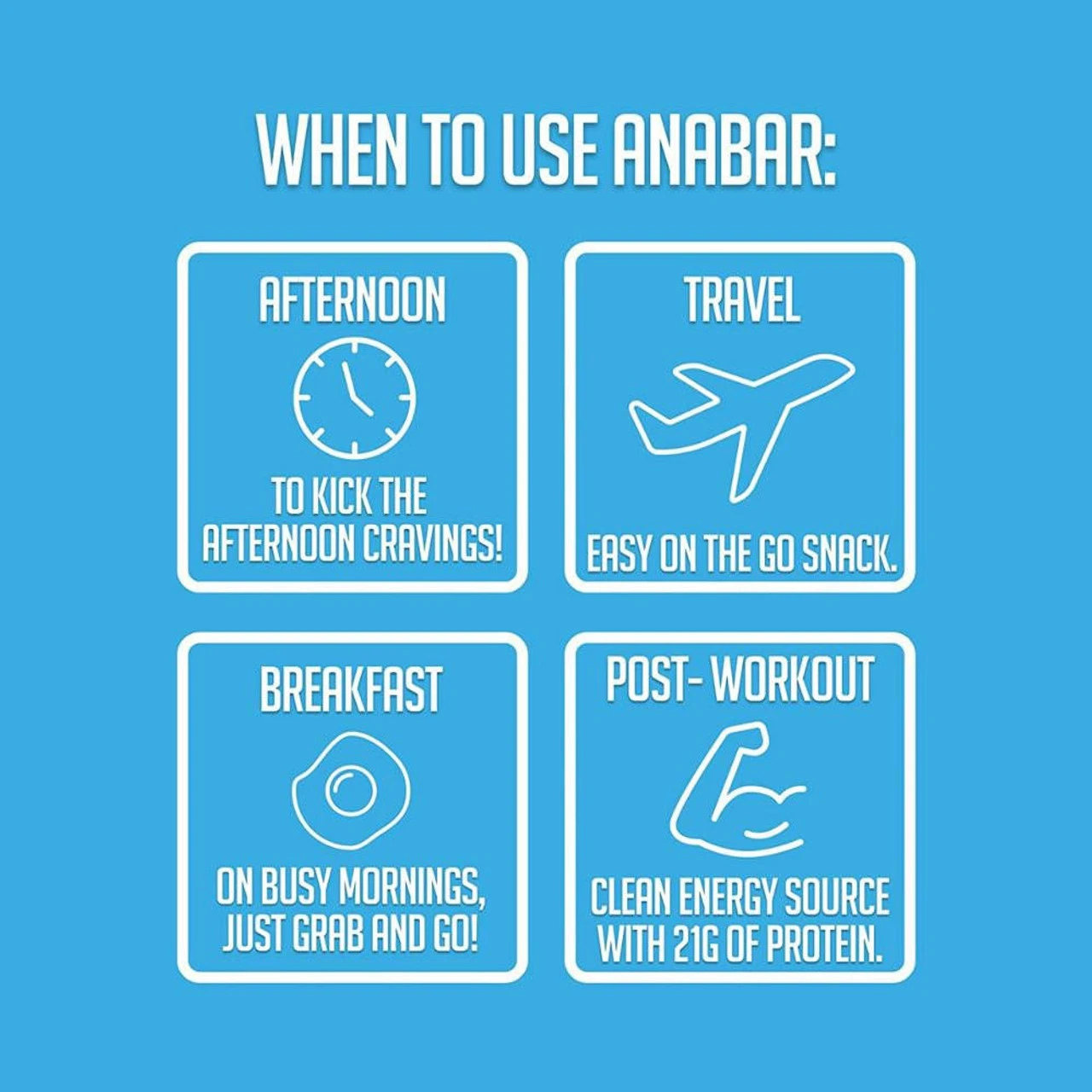 Anabar Protein Bars are one of the richest and tastiest bars on the market, perfect as a before the gym snack, a breakfast alternative or a post workout snack providing 21 grams of high quality protein to fuel your muscles. These tasty bars are whole food based with no fillers and zero sugar alcohol or dyes.
