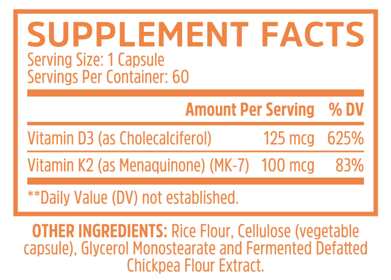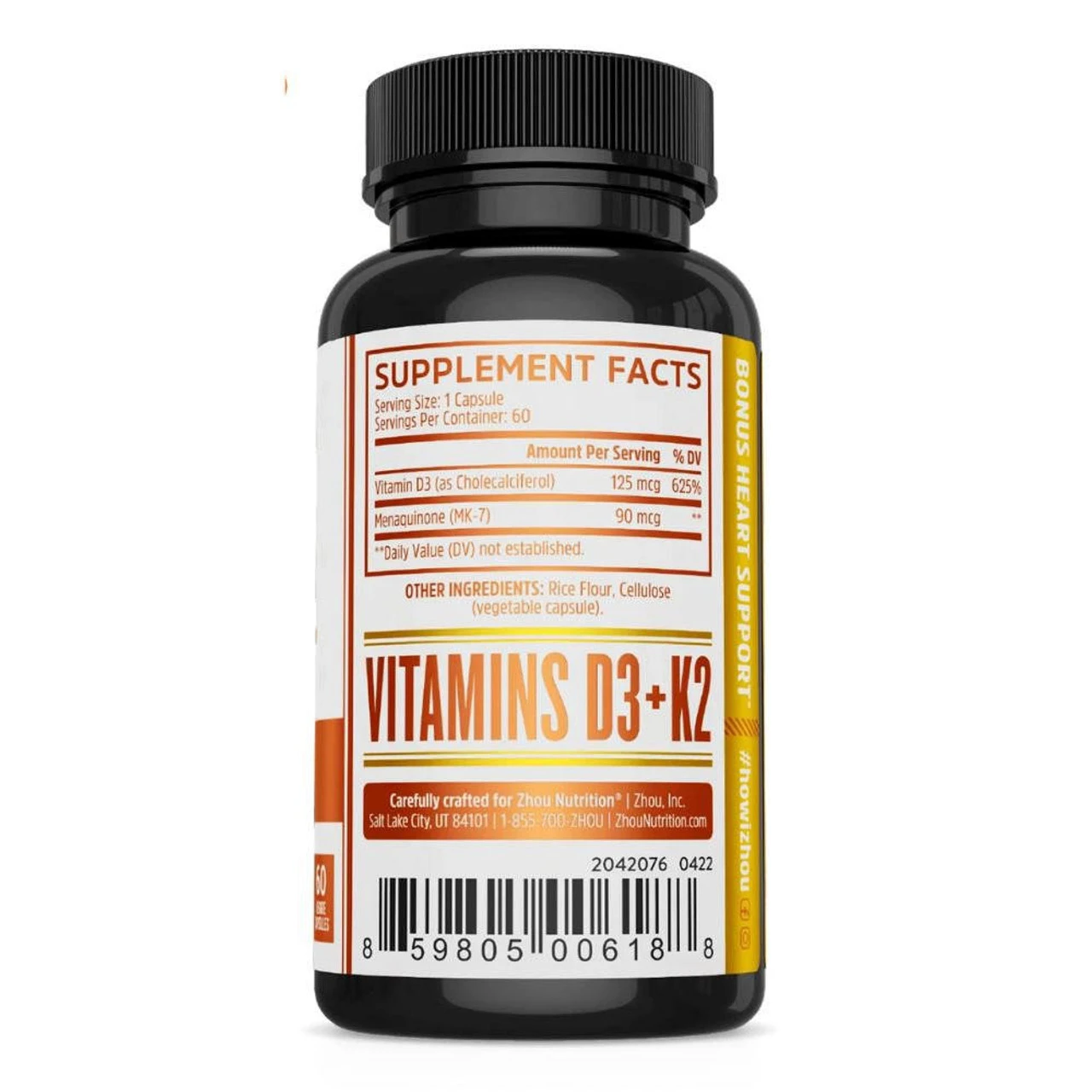 ZHOU D3 + K2 60 Capsules Ingredients and Supplement Facts